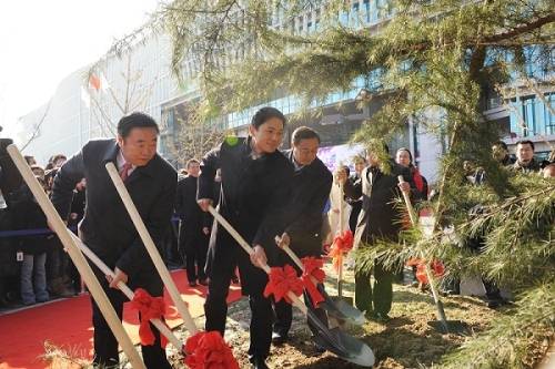 在現(xiàn)場可以看到,一個巨大的幕布從大廈西側(cè)的頂樓垂下,上面印著百度數(shù)千名員工照片組成的笑臉,使過往的行人都感受到慶典儀式的喜慶氛圍。儀式上,300名百度員工及百度愛好者們共同出演“百人秀”,通過跑動在大廈前的廣場上排出一個個活潑生動的慶典圖案,更將整個活動的氣氛推向高潮。最后,李彥宏和員工及網(wǎng)友代表一起,在大廈前種下一棵象征基業(yè)長青的雪松,培上百度各地網(wǎng)友取來的五岳之土,并以長江、黃河之水澆灌。