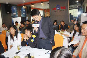 秋高氣爽,舒適宜人。2008年10月24號(hào)下午,“營銷加速度”——百度營銷專家培訓(xùn)會(huì),在美麗的丹頂鶴之鄉(xiāng)鹽城拉開了帷幕。在思科百度商務(wù)會(huì)所里,客戶們齊聚一堂,氣氛甚是融洽。本次會(huì)議真可謂陣容強(qiáng)大,百度客服部經(jīng)理張鵬先生與百度渠道部經(jīng)理晟皞先生兩大經(jīng)理齊上陣,再加上思科資深網(wǎng)絡(luò)營銷專家、客服部經(jīng)理盧全女士精彩而實(shí)用的演講,現(xiàn)場客戶個(gè)個(gè)大飽耳福,獲益非淺。會(huì)議開場主持人帶領(lǐng)大家玩默契火拼游戲,破冰熱場,大家玩得不亦樂呼!短暫的游戲后,與會(huì)嘉賓都專心致志的聽著張鵬經(jīng)理、盧全經(jīng)理精彩的演講。在有獎(jiǎng)問答環(huán)節(jié),客戶們更是奮勇?lián)尨穑颜麄€(gè)會(huì)議推向了高潮。