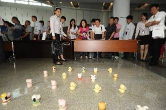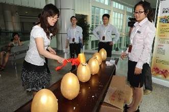 禮品區(qū)人潮涌動,工作人員井然有序地幫客戶兌換禮品
