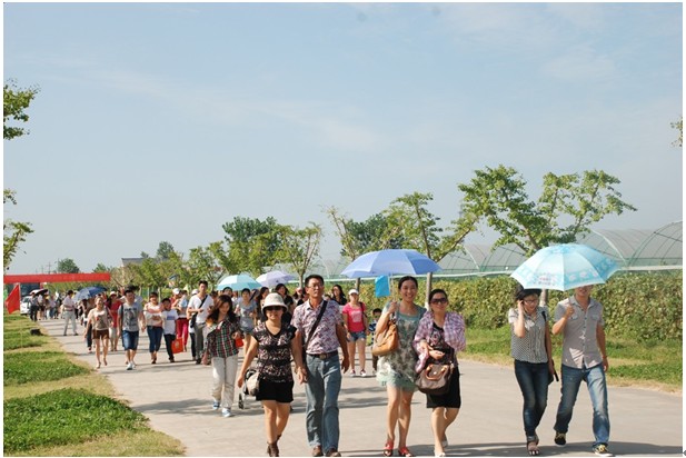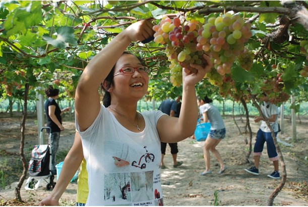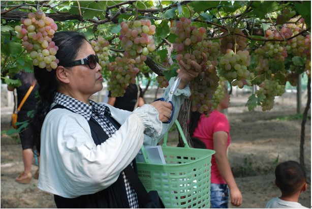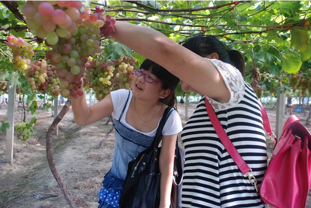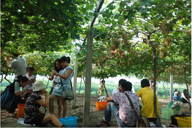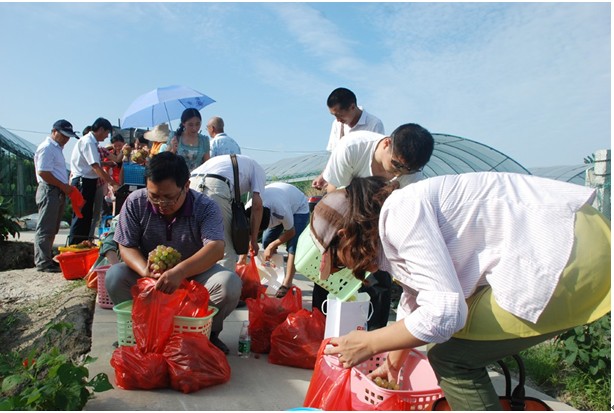午宴之后,客戶與員工乘坐營銷體驗(yàn)車和大巴來到仰徐農(nóng)業(yè)科技有限公司的葡萄園,收獲這次的豐收之旅。