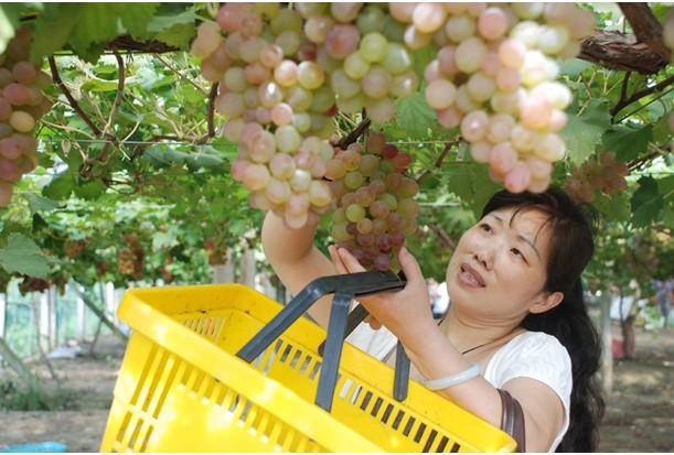 摘累了,豐收了,先讓我來嘗一下提子的甜蜜
