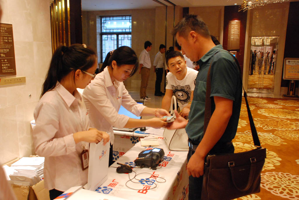 二維碼簽到區(qū),參會客戶簽到有序進行中